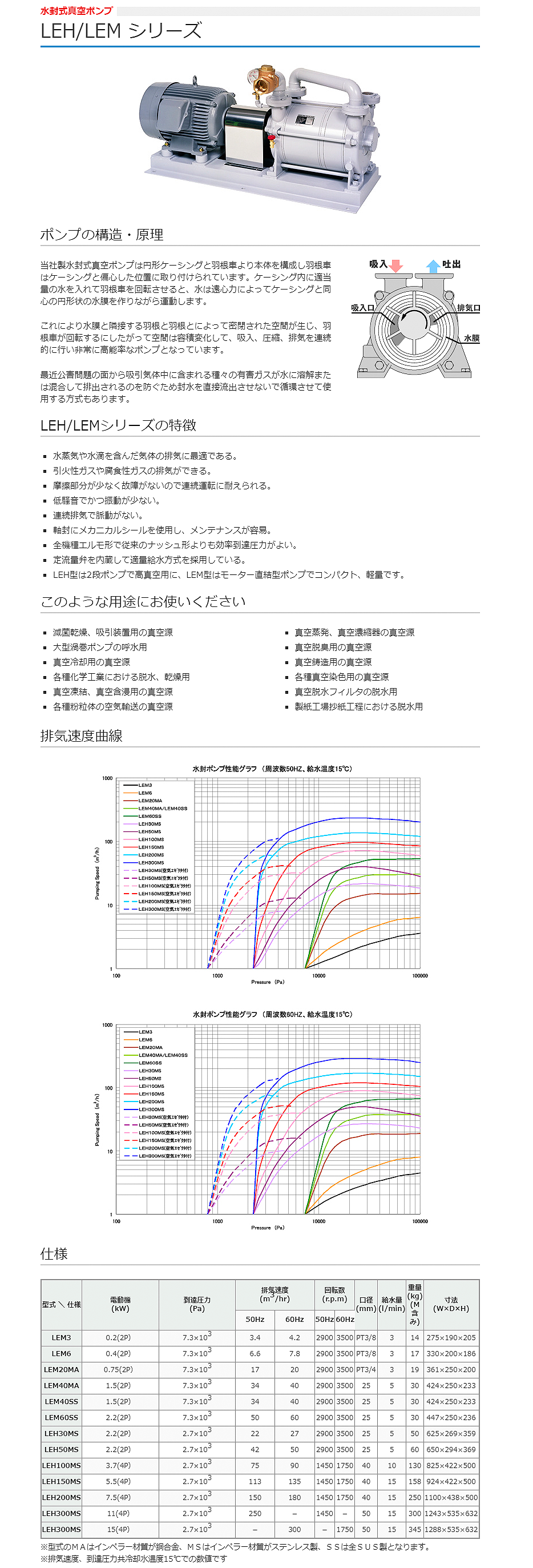 樫山工業水封式真空泵LEH50MS